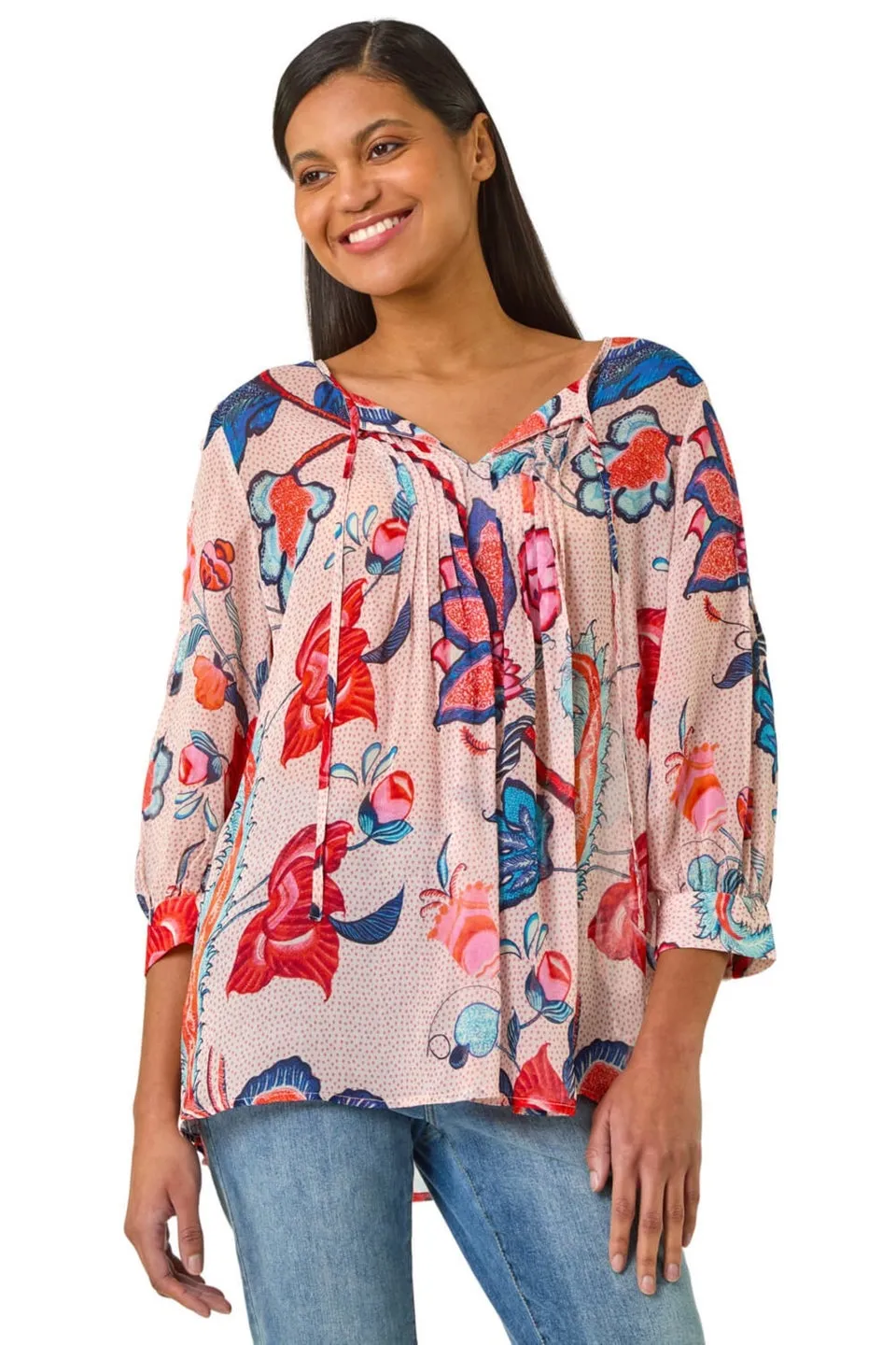 Sale!Roman Blue Floral Printed Frill Sleeve Top
