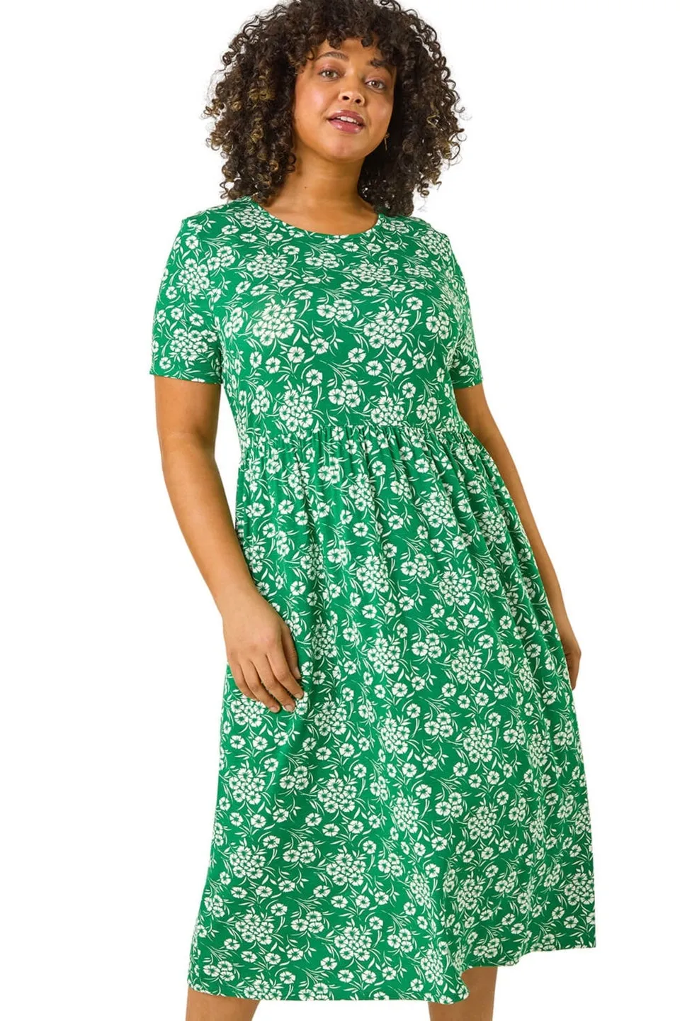 Sale!Roman Green Curve Floral Print Stretch Midi Dress