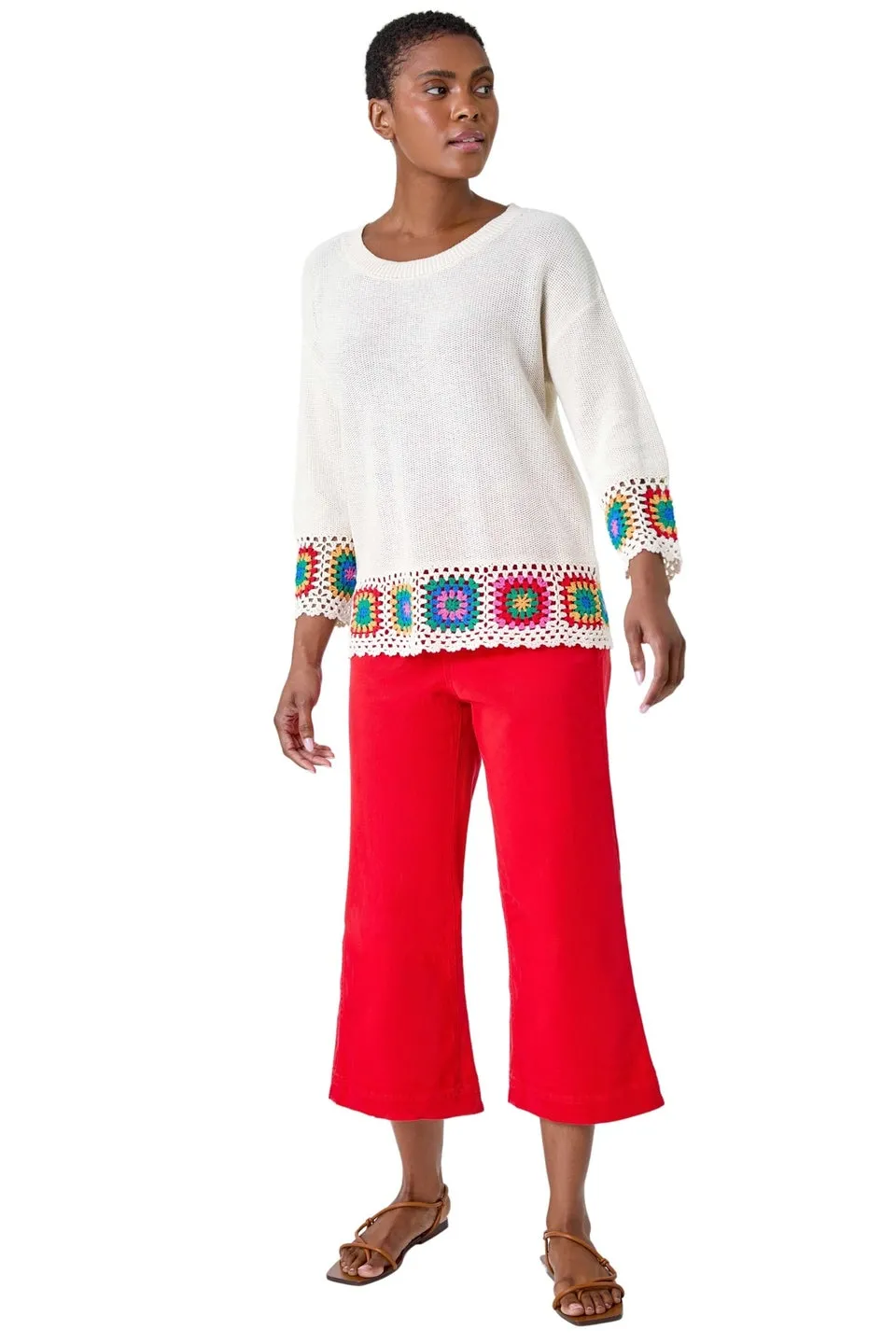 • Roman Ivory Floral Crochet Hem Cotton Jumper
