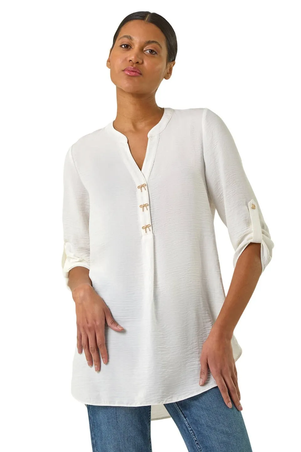 Roman Ivory Longline Bow Button Top