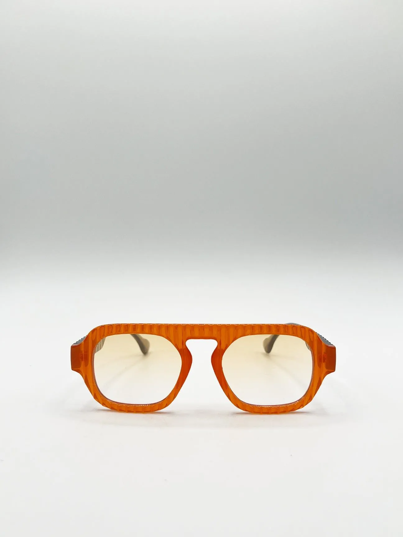 • Retro Ribbed Navigator Sunglasses in Orange Grey
