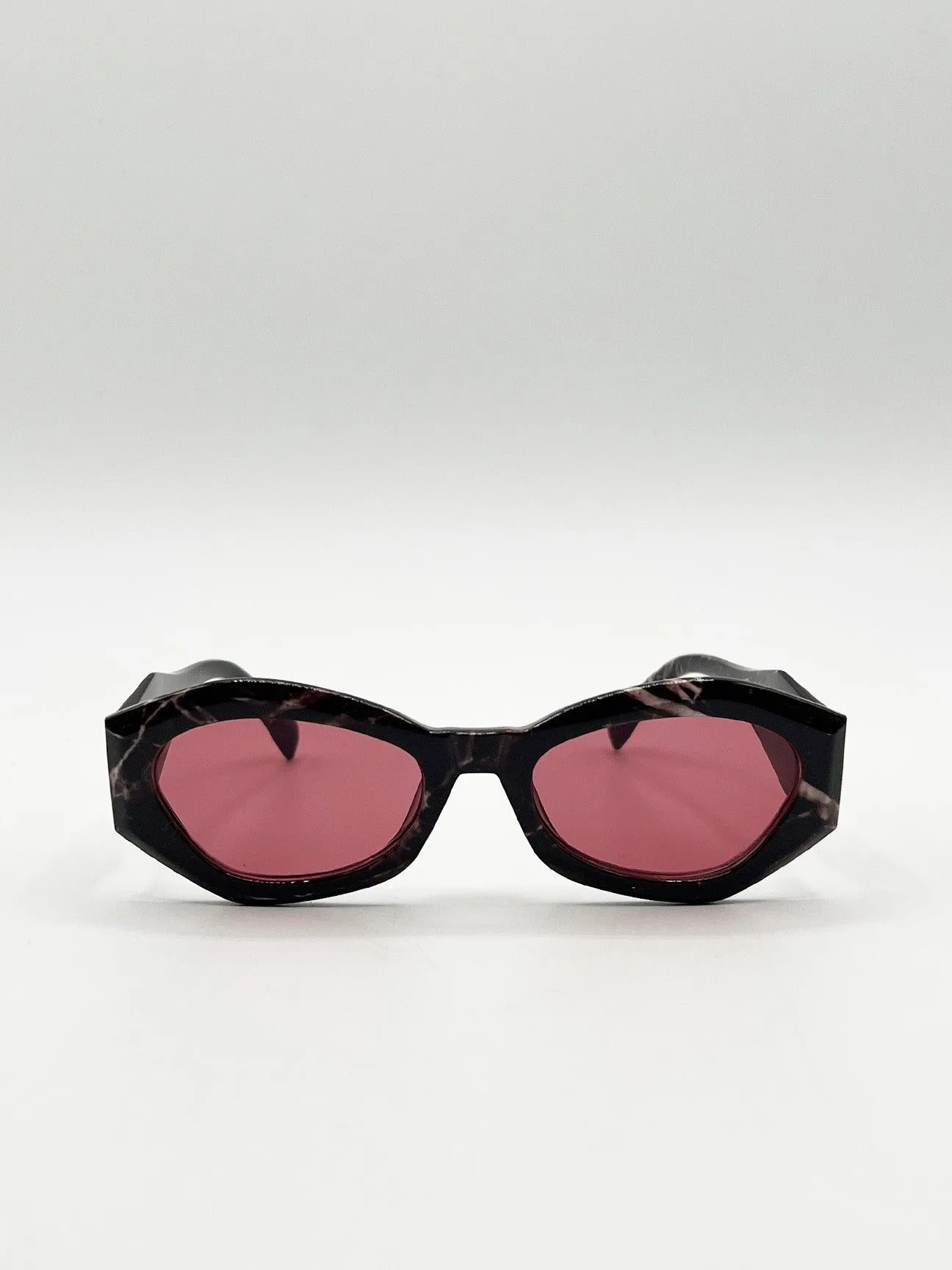 Retro Polygonal Cat-Eye Sunglasses in Red