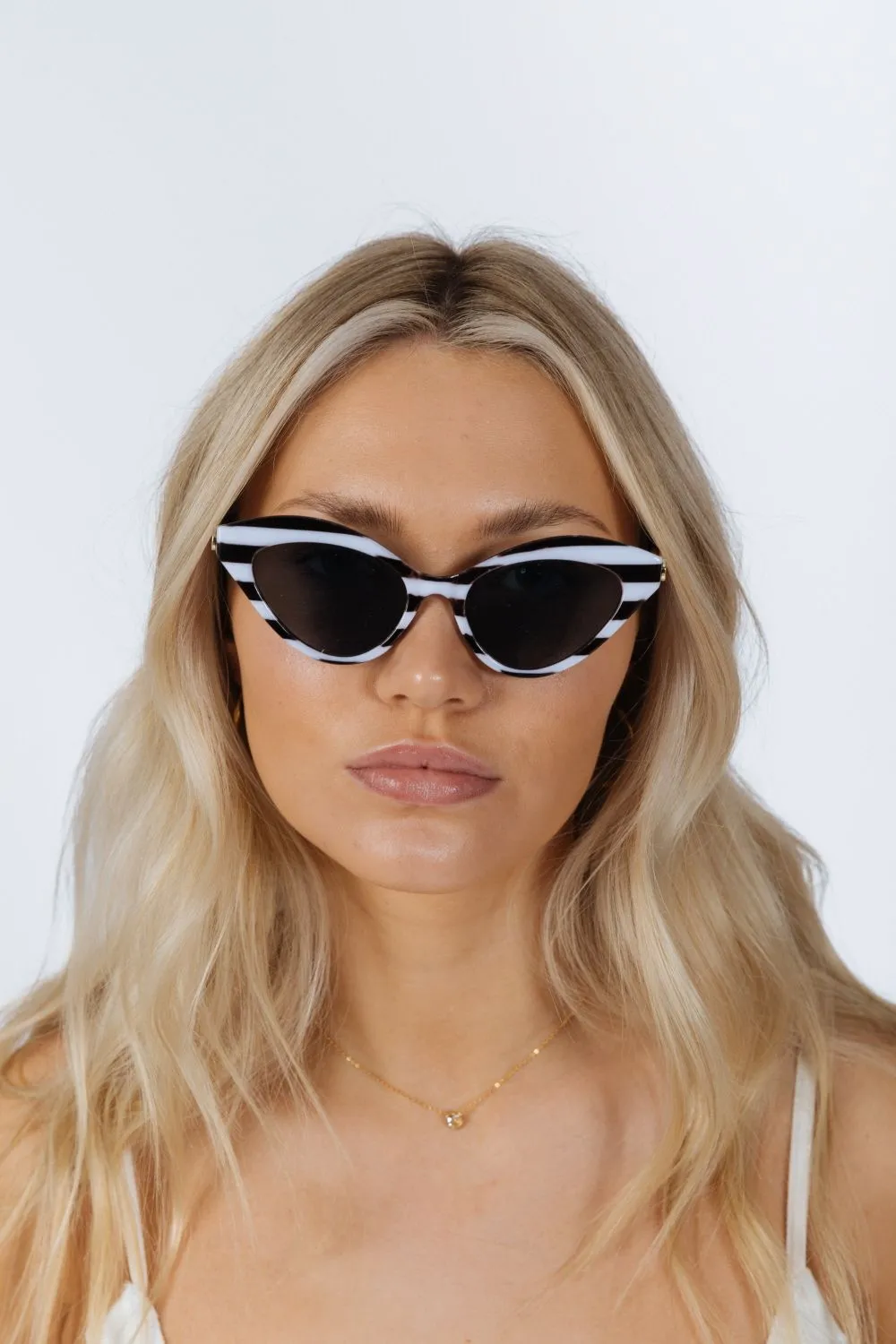 Sale!Cat-Eye Sunglasses in Black White Stripe