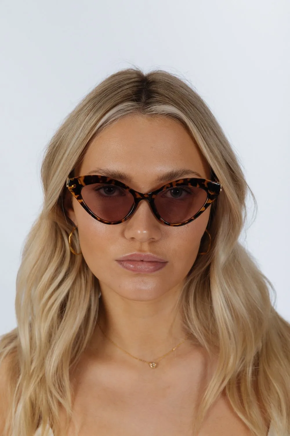 Sale!Cat-Eye Sunglasses with Thin Chain Arm Tortoise