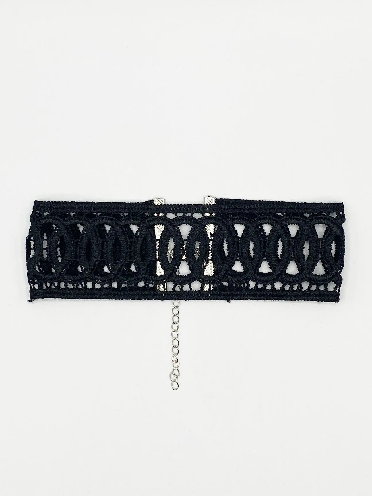 Sale!Black Wide Corded Effect Circular Detail Choker Necklace