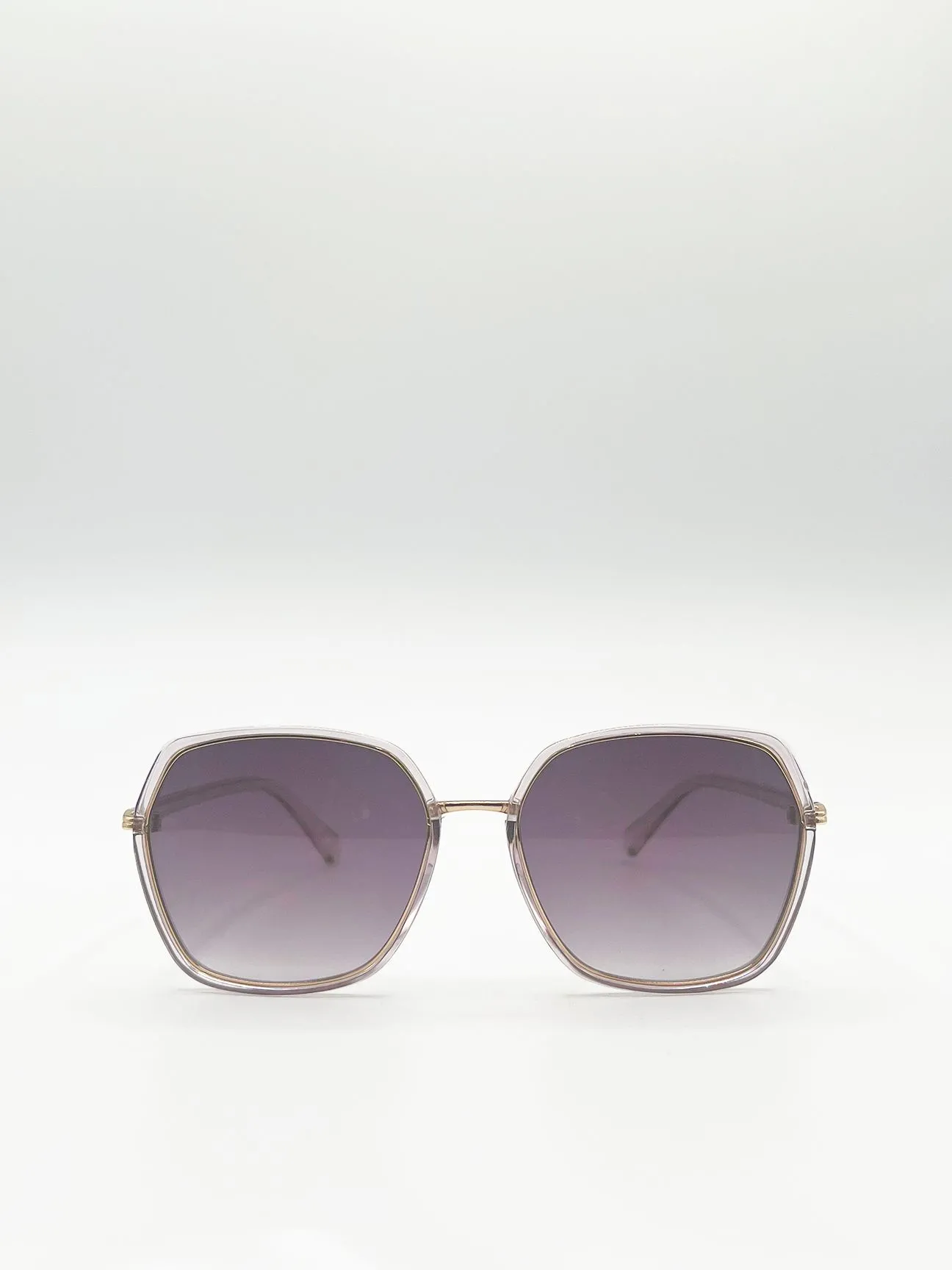 Oversized Square Frame in Brown Tortoiseshell with Purple Lenses