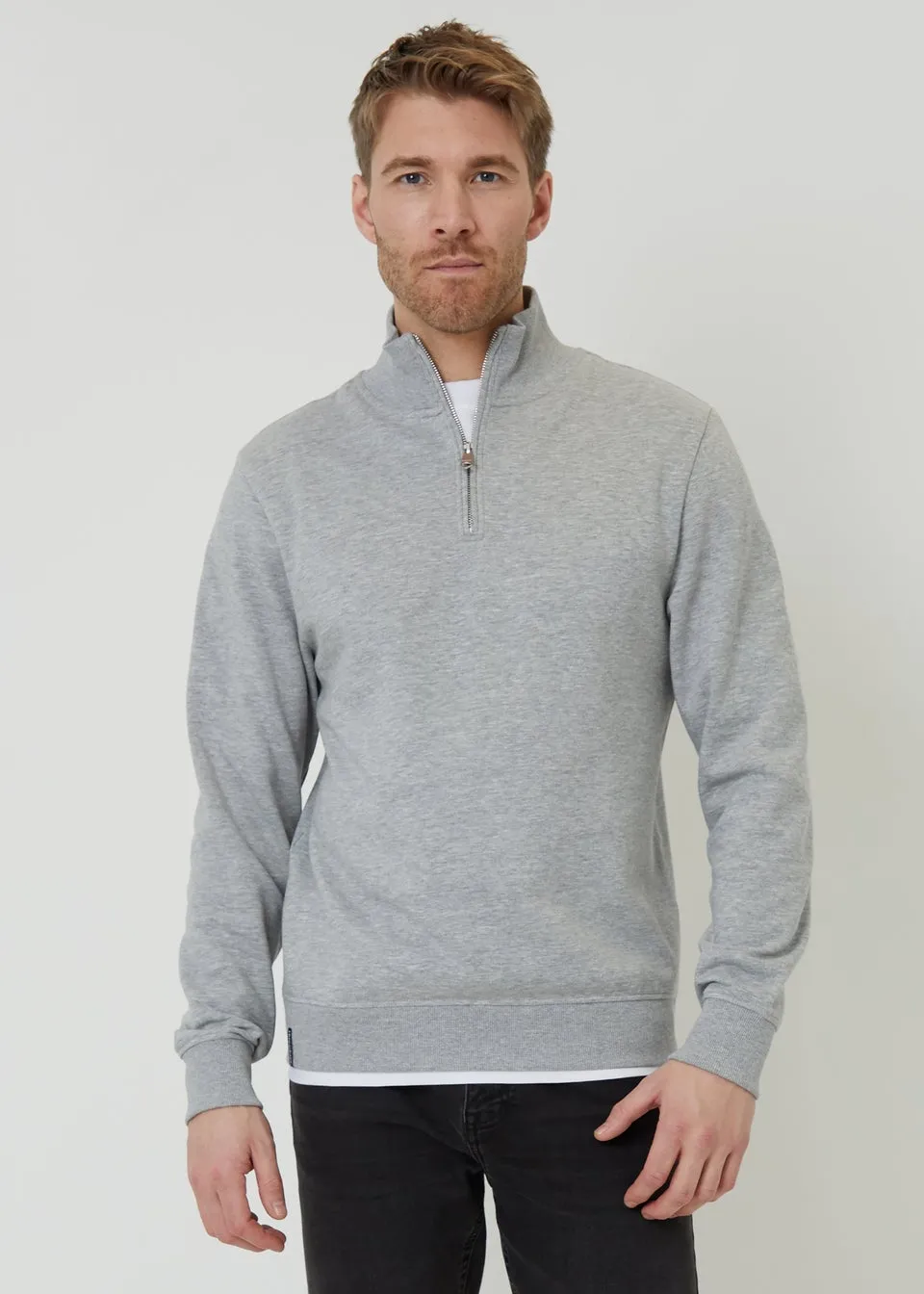 Sale!Threadbare Light Grey Mock T-Shirt Quarter Zip Sweatshirt