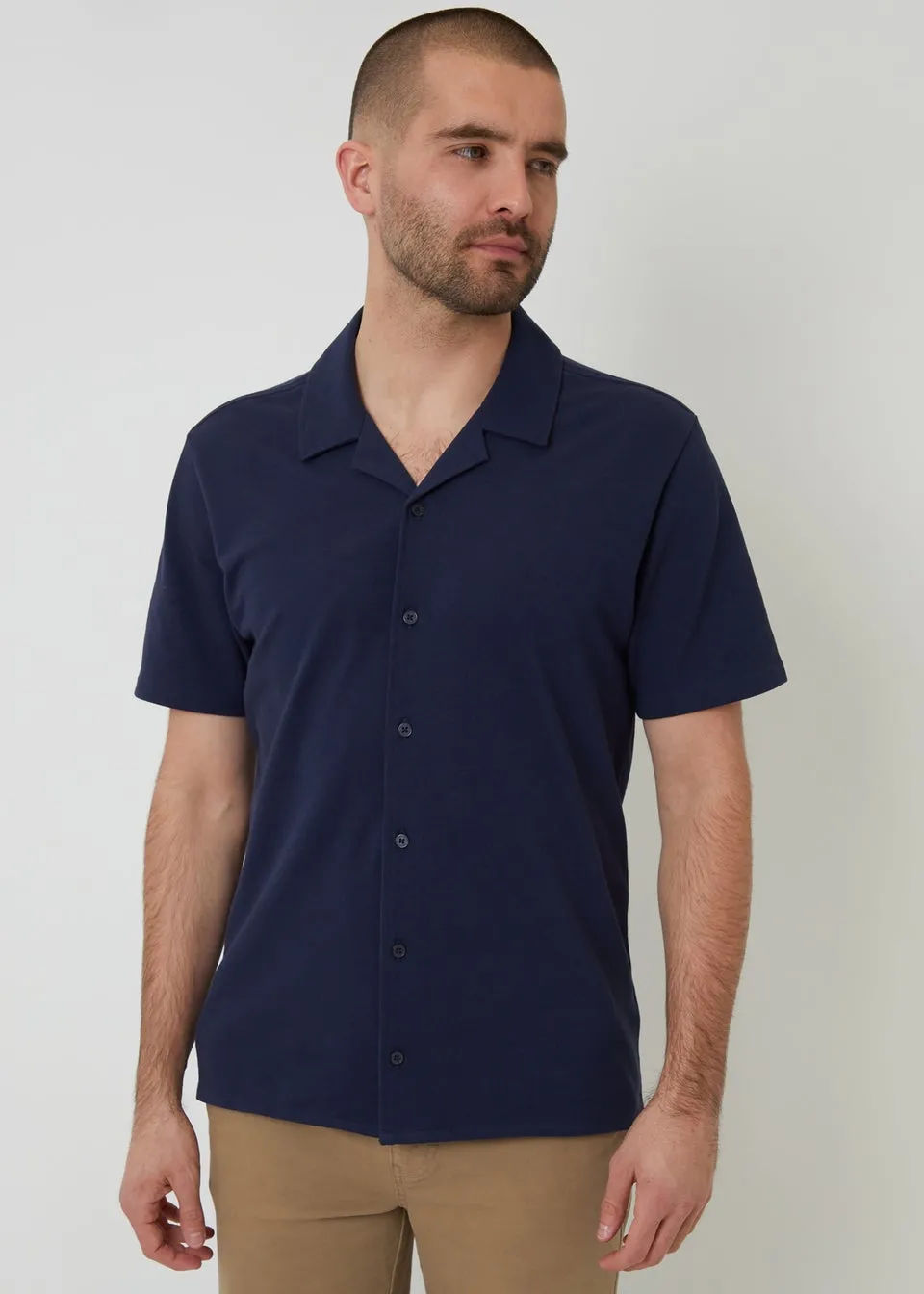 Sale!Threadbare Navy Cotton Pique Revere Collar Short Sleeve Shirt