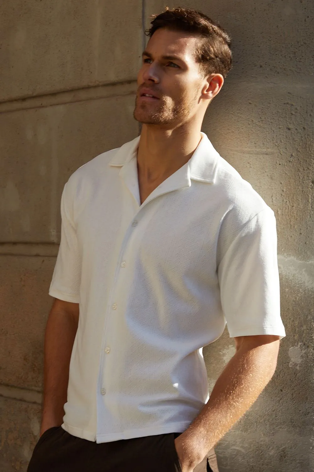 Sale!‘Robbie’ Textured Short Sleeve Cotton Shirt With Stretch
