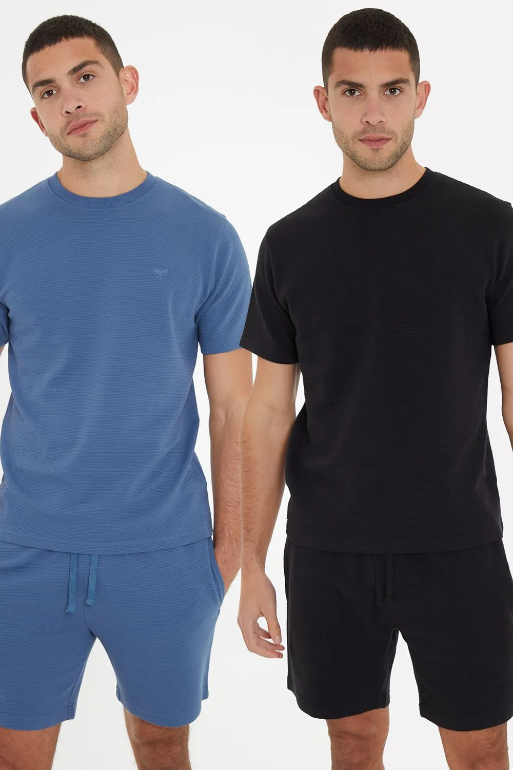 Sale!2-Pack ‘Trentham’ Ottoman Rib Textured Shortie Lounge Sets