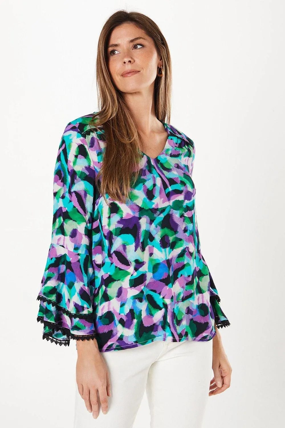 Sale!Abstract Crinkle Viscose Tie Front Midaxi Dress