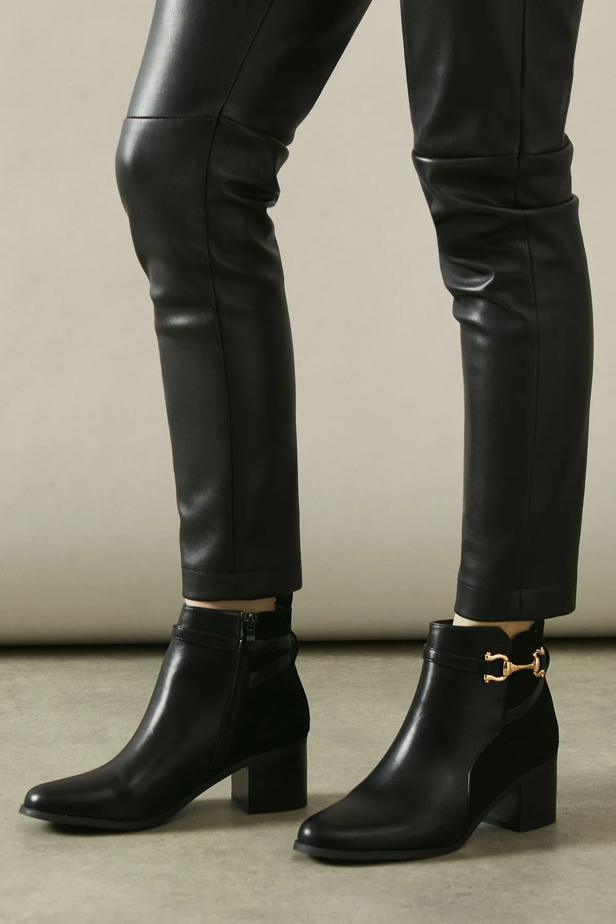 Sale!Antonia Faux Leather & Suede Snaffle Detail Mid Heel Ankle Boots