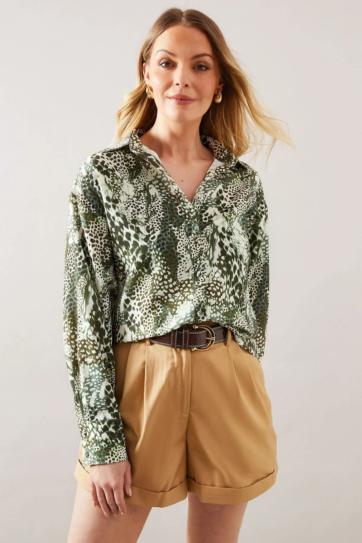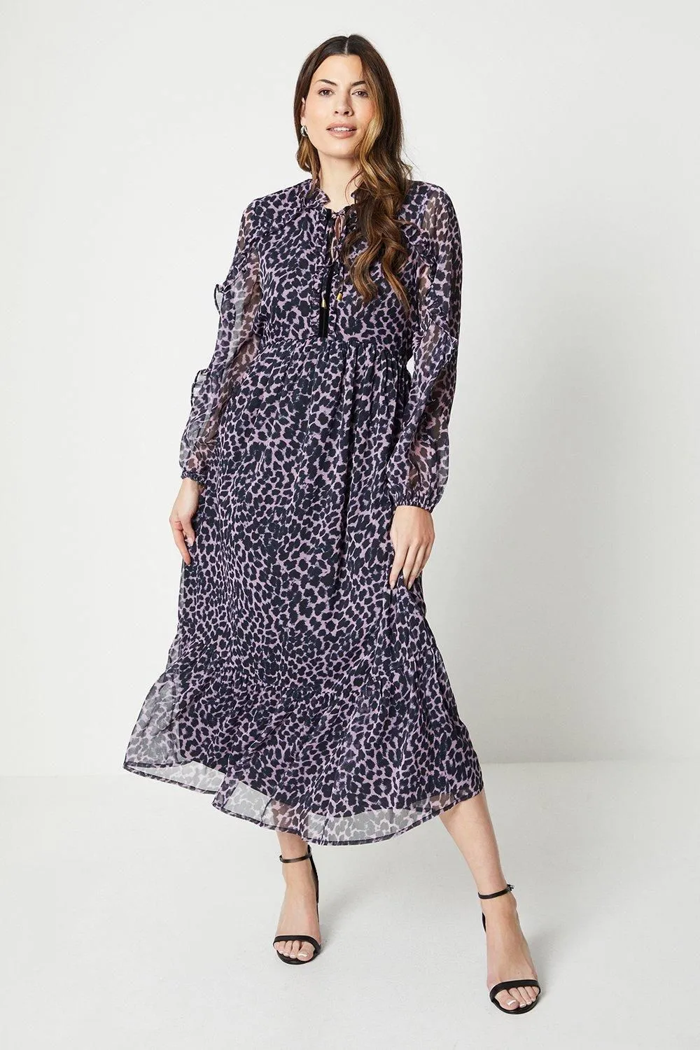 Sale!Animal Print Chiffon Frill Midi Smock Dress