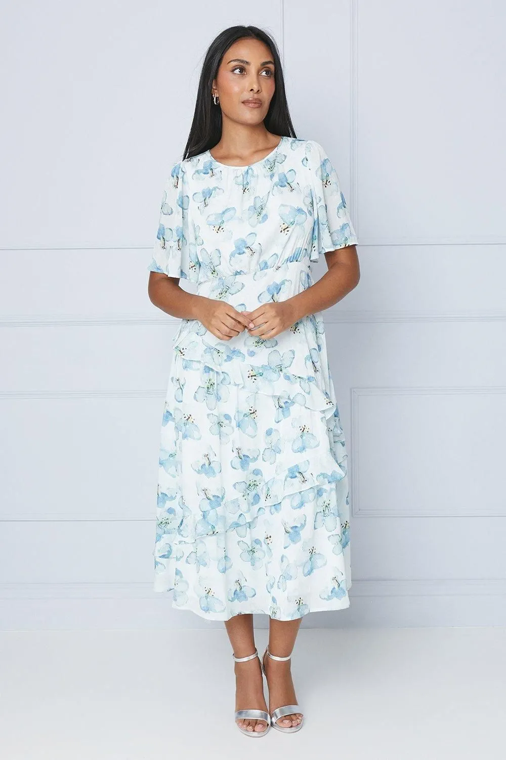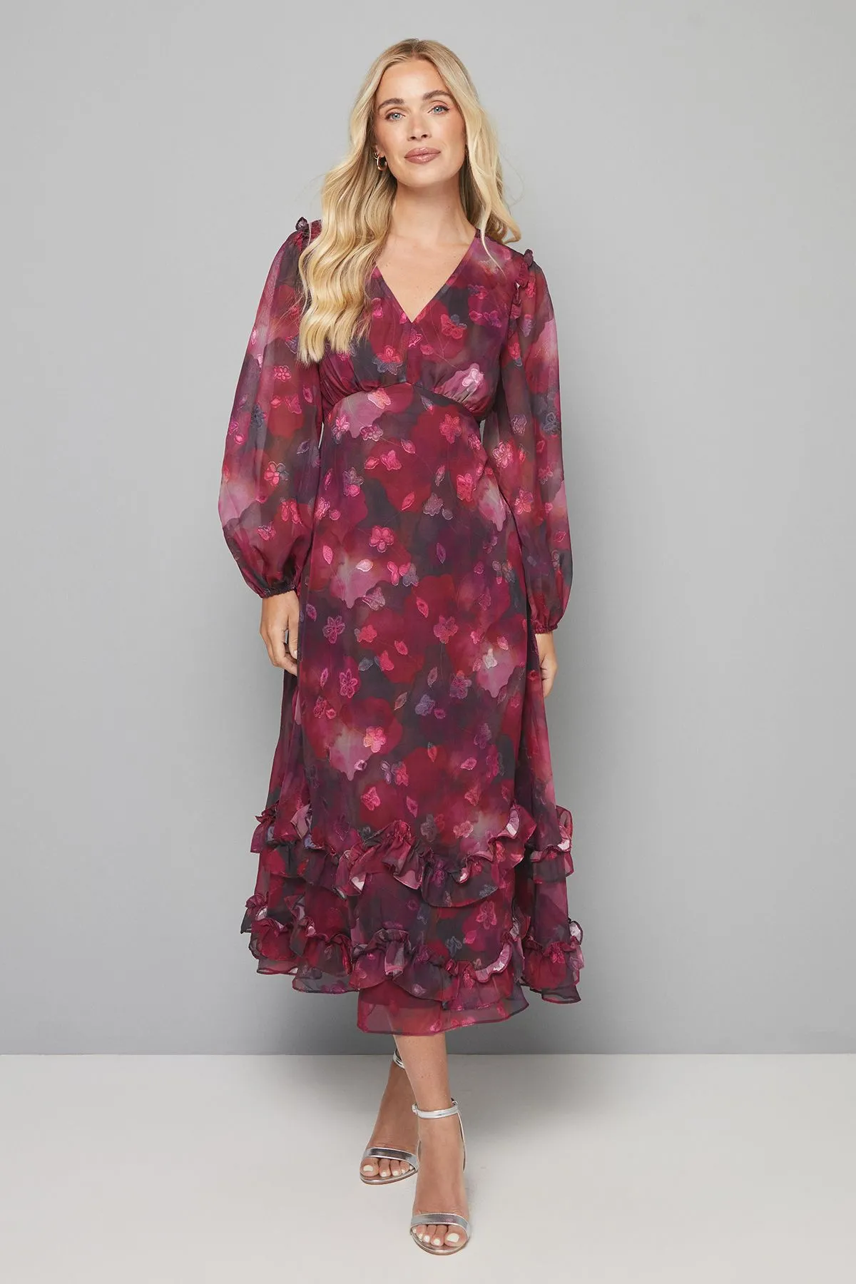 Petite Floral Satin Ruffle Hem Midaxi Dress