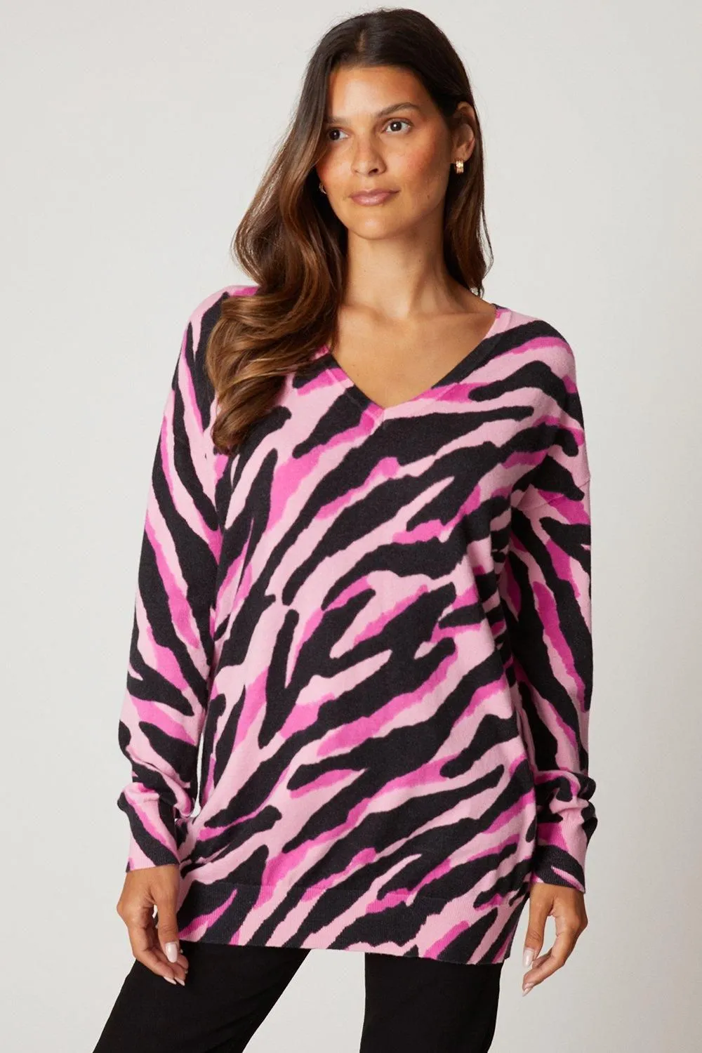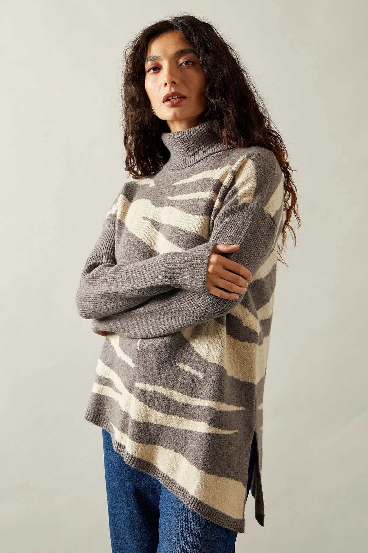 Sale!Zebra Roll Neck Asymmetric Hem Tunic
