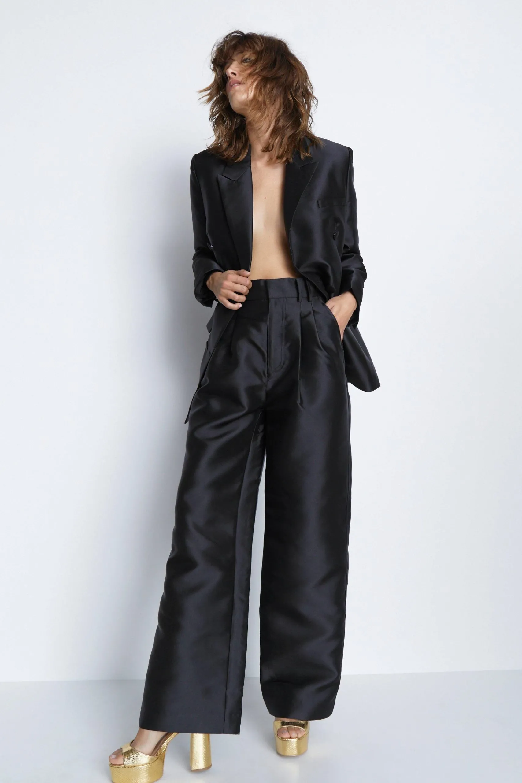 Sale!Satin Twill High Waisted Wide Leg Trousers