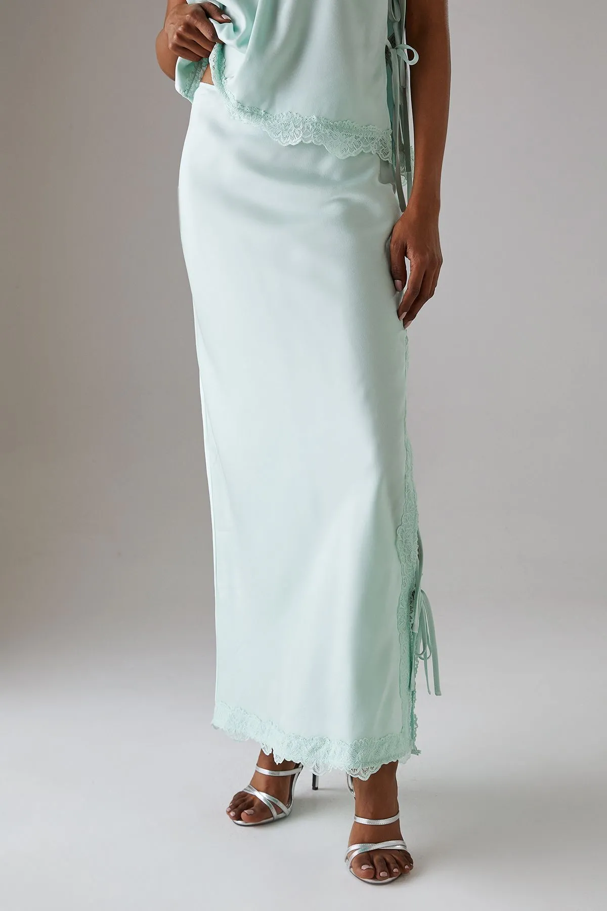 Sale!Satin Lace Bias Midi Skirt