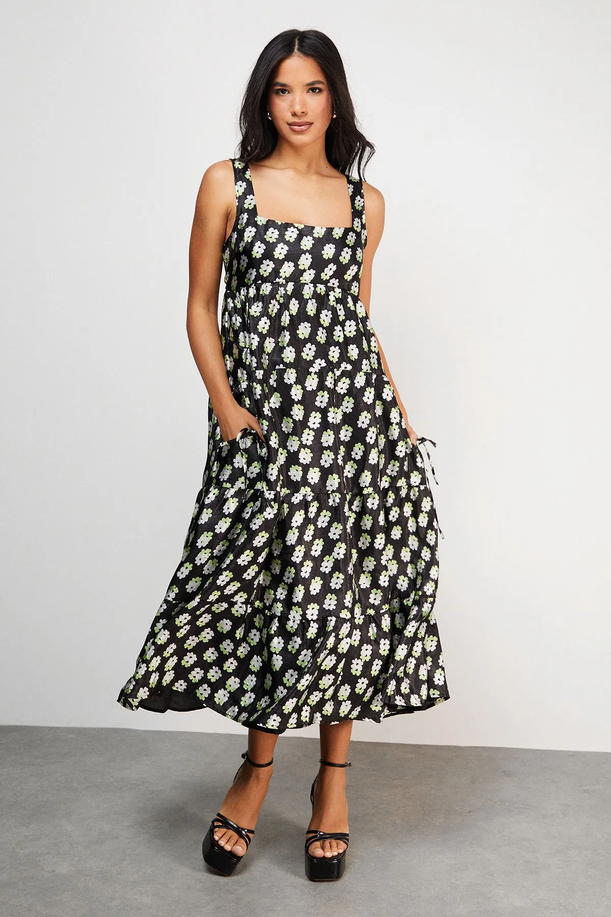 Sale!Square Neck Smock Midi Dress With Below Pocket