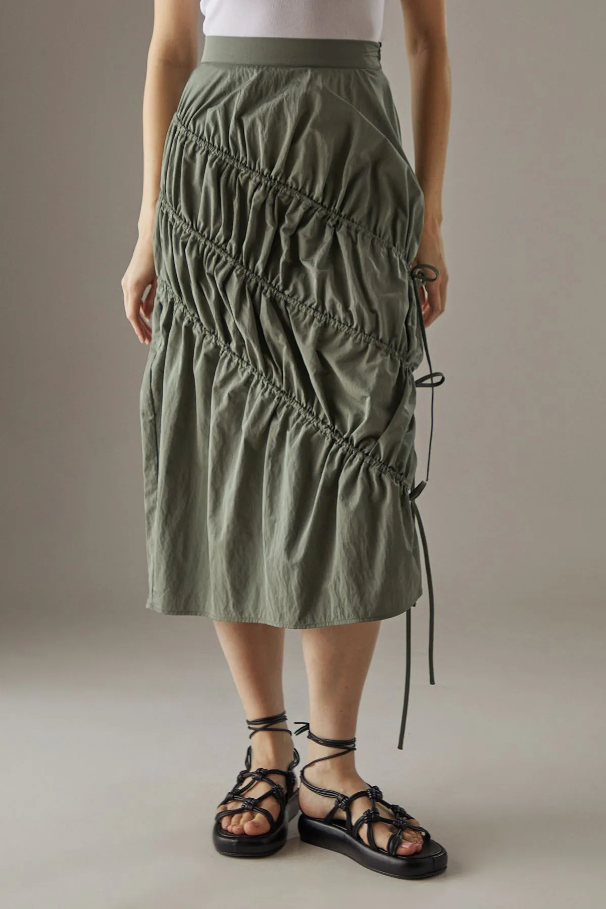 • Stripe Chiffon Pleat Plunge Neck Batwing Midaxi Dress