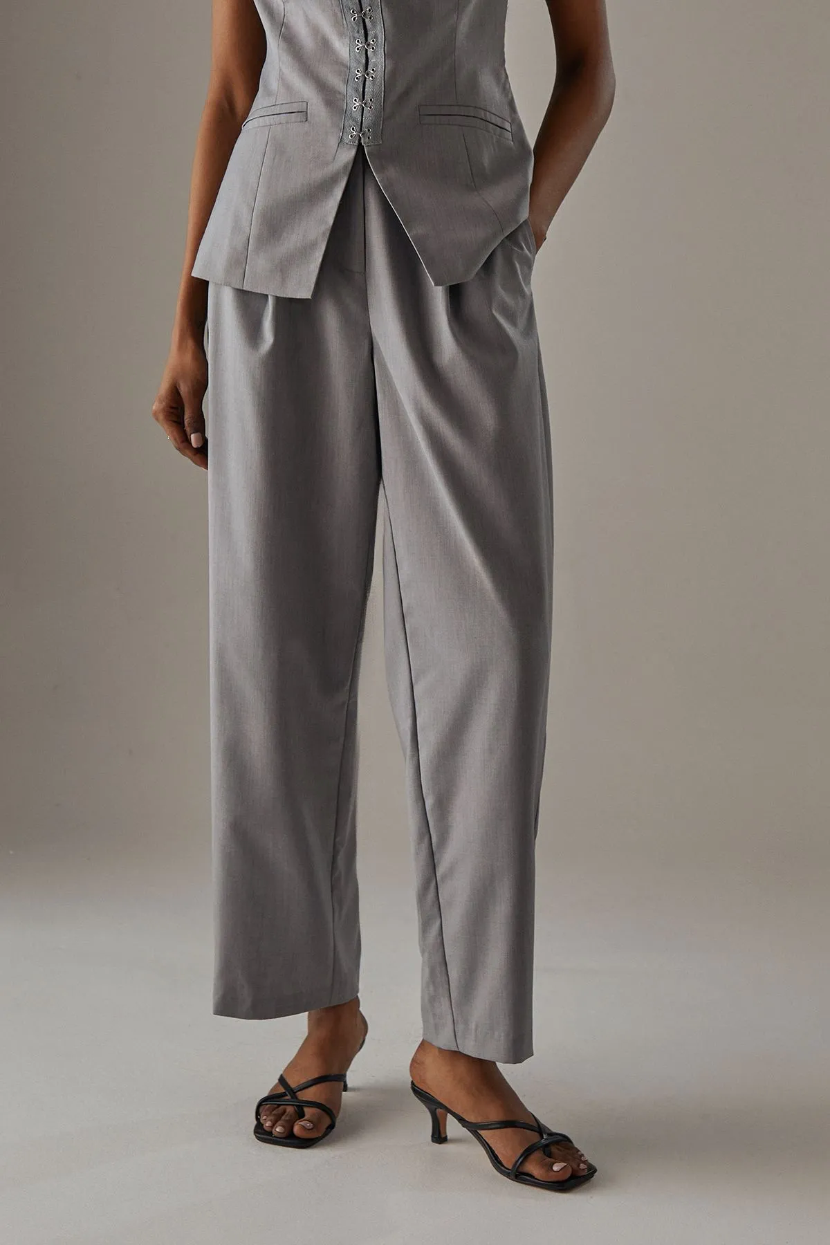 Tailored High Waisted Tailored Barrel Leg Trousers