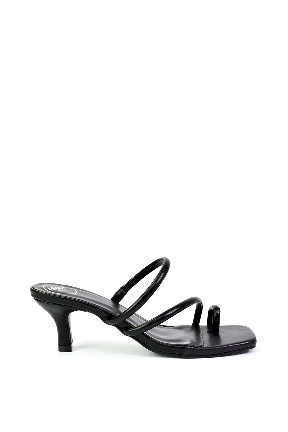 ‘Prancy’ Toe Post Ring Strappy Square Toe Slip on Kitten Heel Mule Sandals