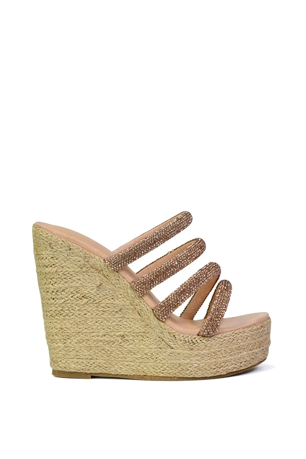 ‘Nalini’ Diamante Strappy Platform Sandal Wedge Heels