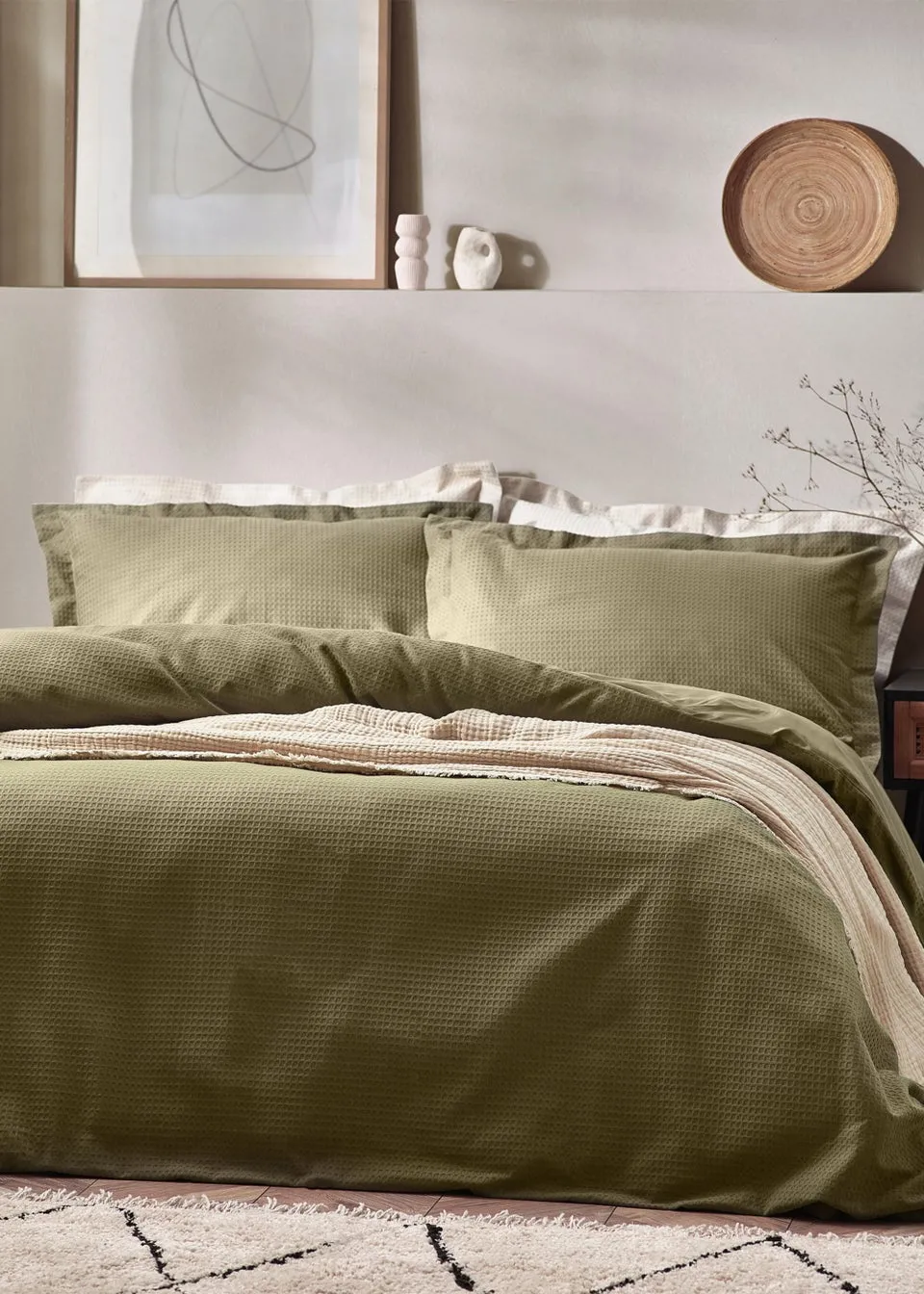 Yard Waffle Textured 100% Cotton Duvet Cover Set Olive