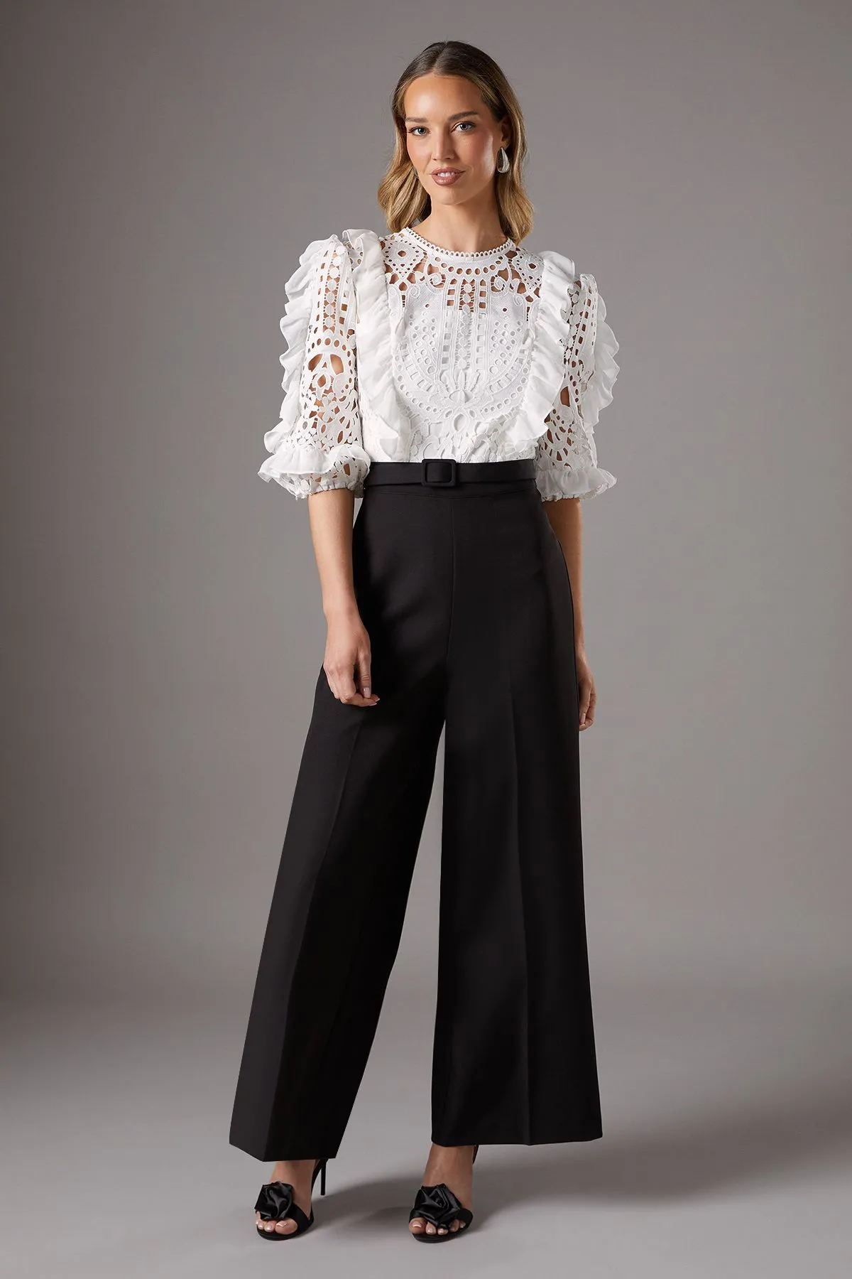 This captivating Warehouse jumpsuit combines bohemian flair with sophisticated design elements. The halter neckline frames the face beautifully while the cold shoulder cut-out and flared sleeves create a dramatic, flowing silhouette. The wide-leg trousers enhance the jumpsuit’s elegant movement, making it perfect for special occasions. Style with strappy sandals as shown for daytime events, or transform your look with statement heels and bold jewellery for evening affairs. This versatile piece would be particularly striking at summer weddings, garden parties or race day events. The open back detail adds an unexpected touch of glamour, ensuring you’ll make an impression from every angle. Complete your ensemble with minimal accessories to let this standout jumpsuit take centre stage.