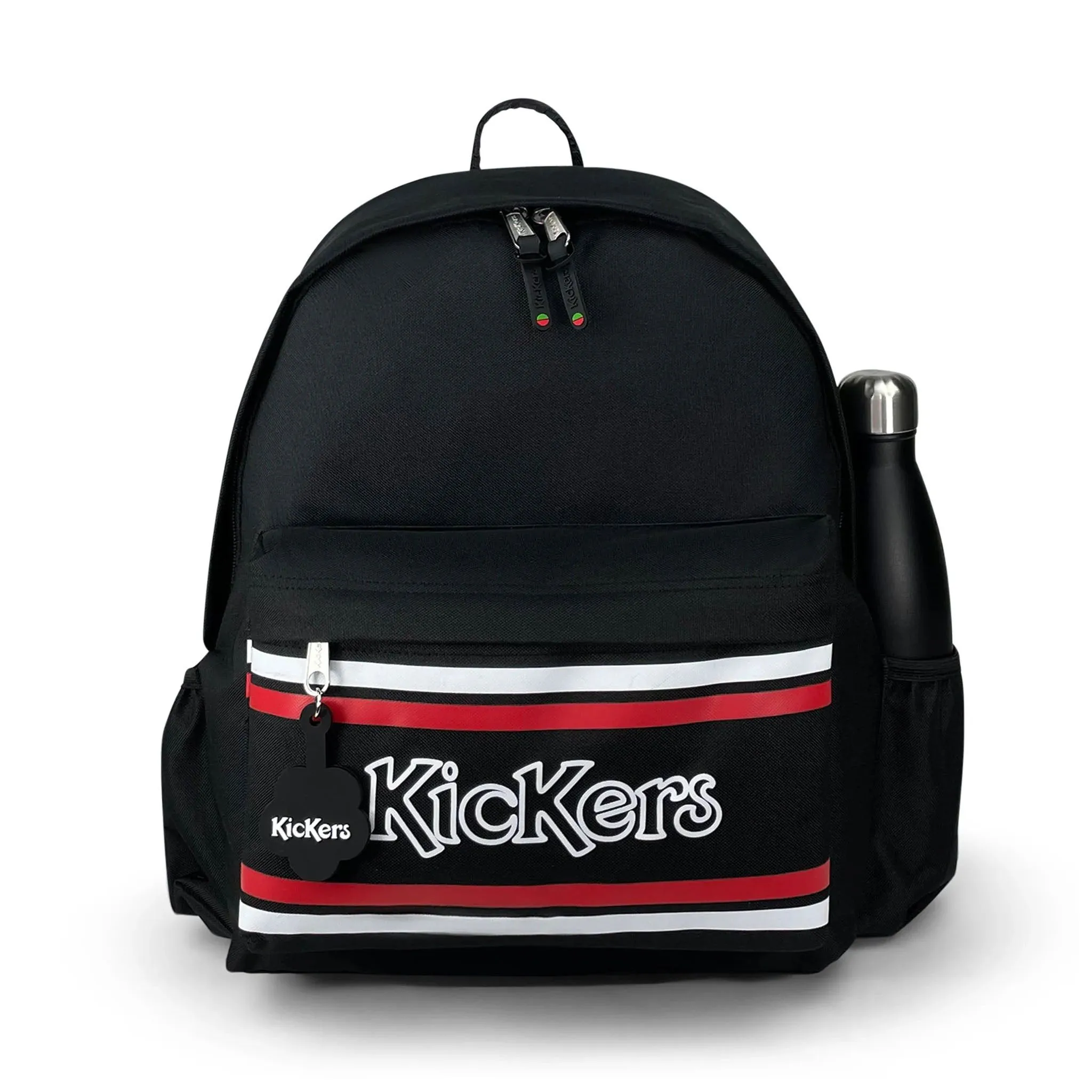 Smooth black leather fills Kickers’ Scuff Lo boy’s infant shoes minimal profile, a winner for the classroom and the playground due to their smart appearance and practical features. The brand’s iconic chunky cleated rubber soles form a solid foundation for the black leather style, scuff resistant panels at their heels and toes keeping them looking smart for longer. Wide rip tape fastenings ensure a secure fit.