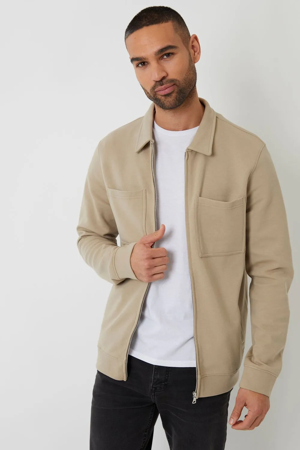 • Zip-Up Blazer with Front Pockets and Long Sleeves- Brown